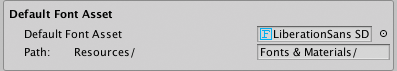 Default Font Asset Specify the default font used when you create a new text object.